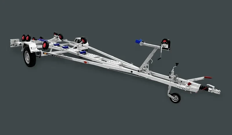 Trailerin tuplarunkoaisa lisää vetovakautta merkittävästi ja parantaa ajotuntumaa myös pidemmillä siirtymillä. Hitsattu runkorakenne on kastamalla kuumasinkitty, mikä antaa tehokkaan suojan korroosiota vastaan ja pidentää käyttöikää vaativissakin olosuhteissa. Leveä, koko perän levyinen peräkippi helpottaa veneen nostoa ja vesillelaskua, ja kaasujousiavusteiset sivutuet lisäävät käsittelyn sujuvuutta.