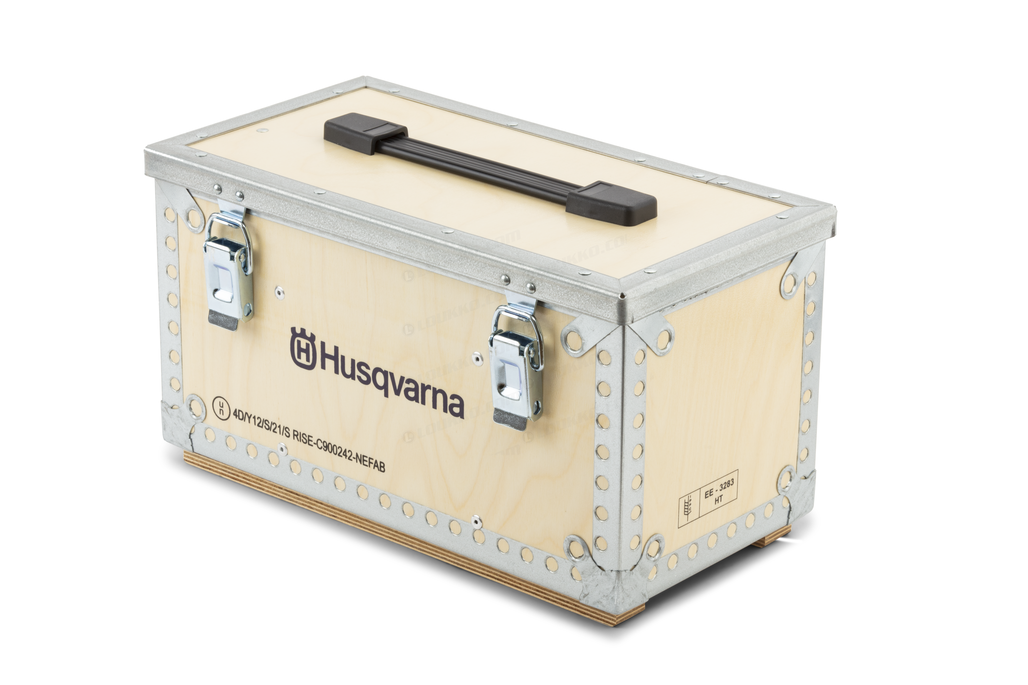 • Husqvarnan puinen 36 V -akkulaatikko on suunniteltu akkujen kuljettamiseen