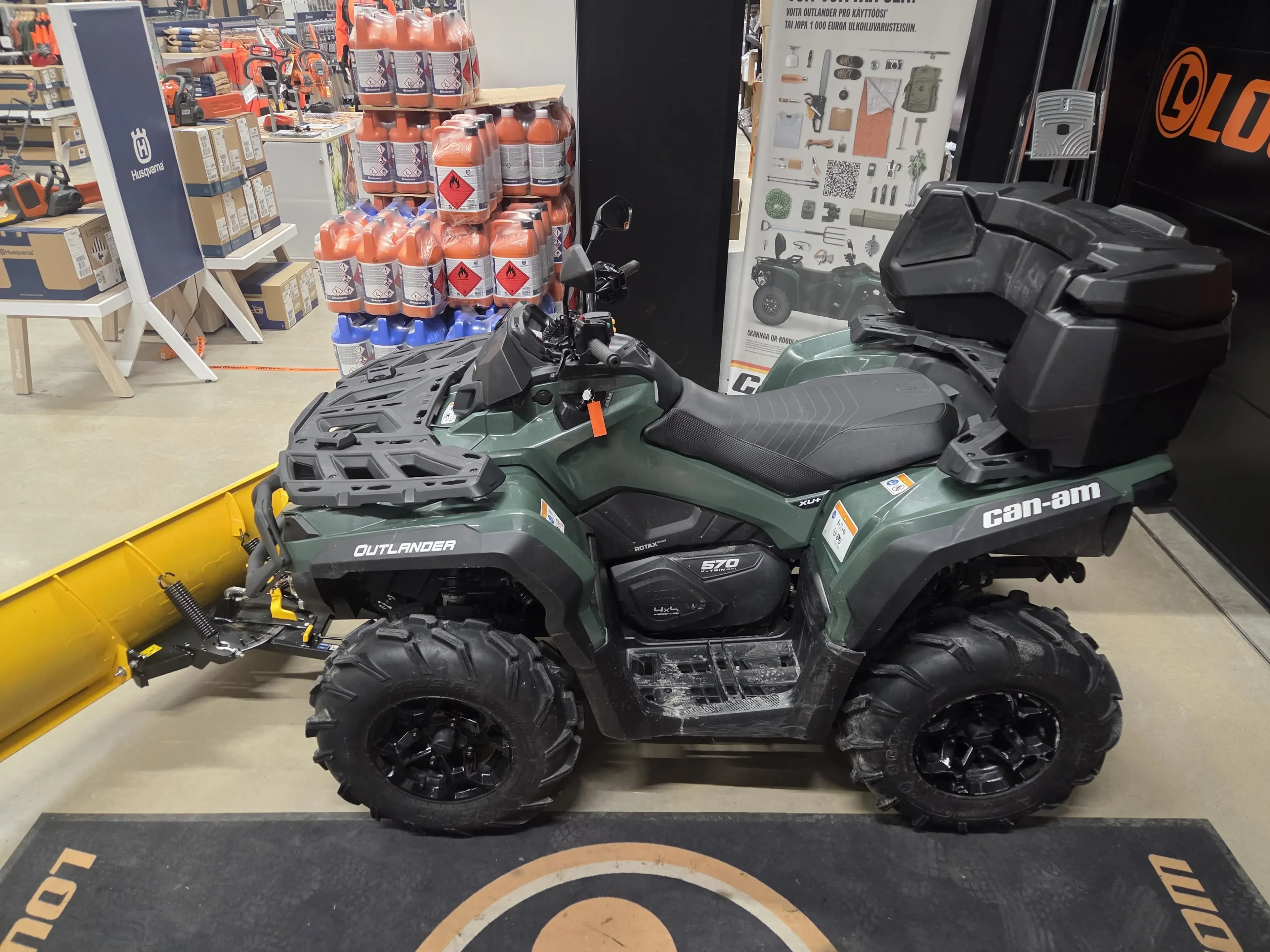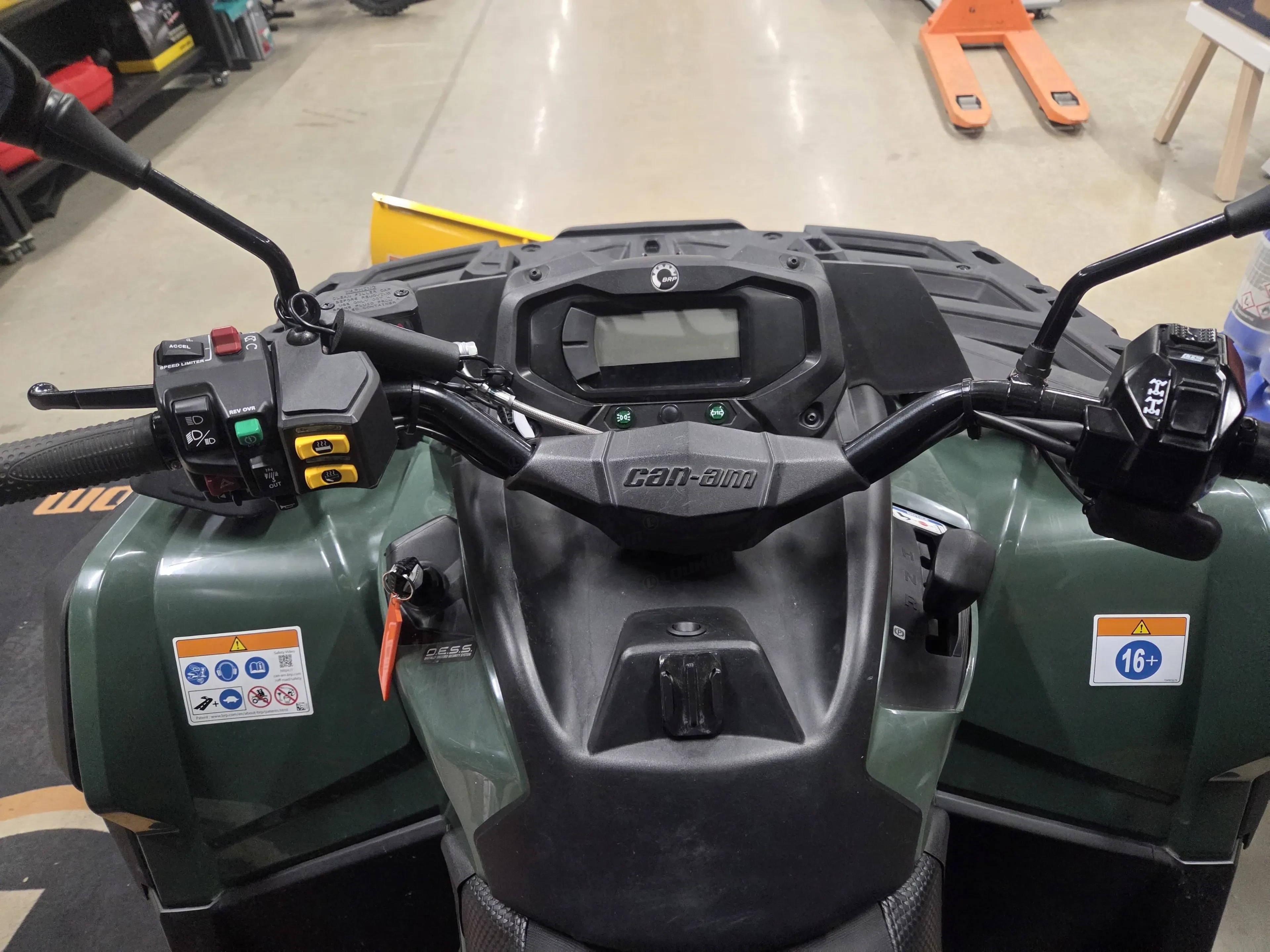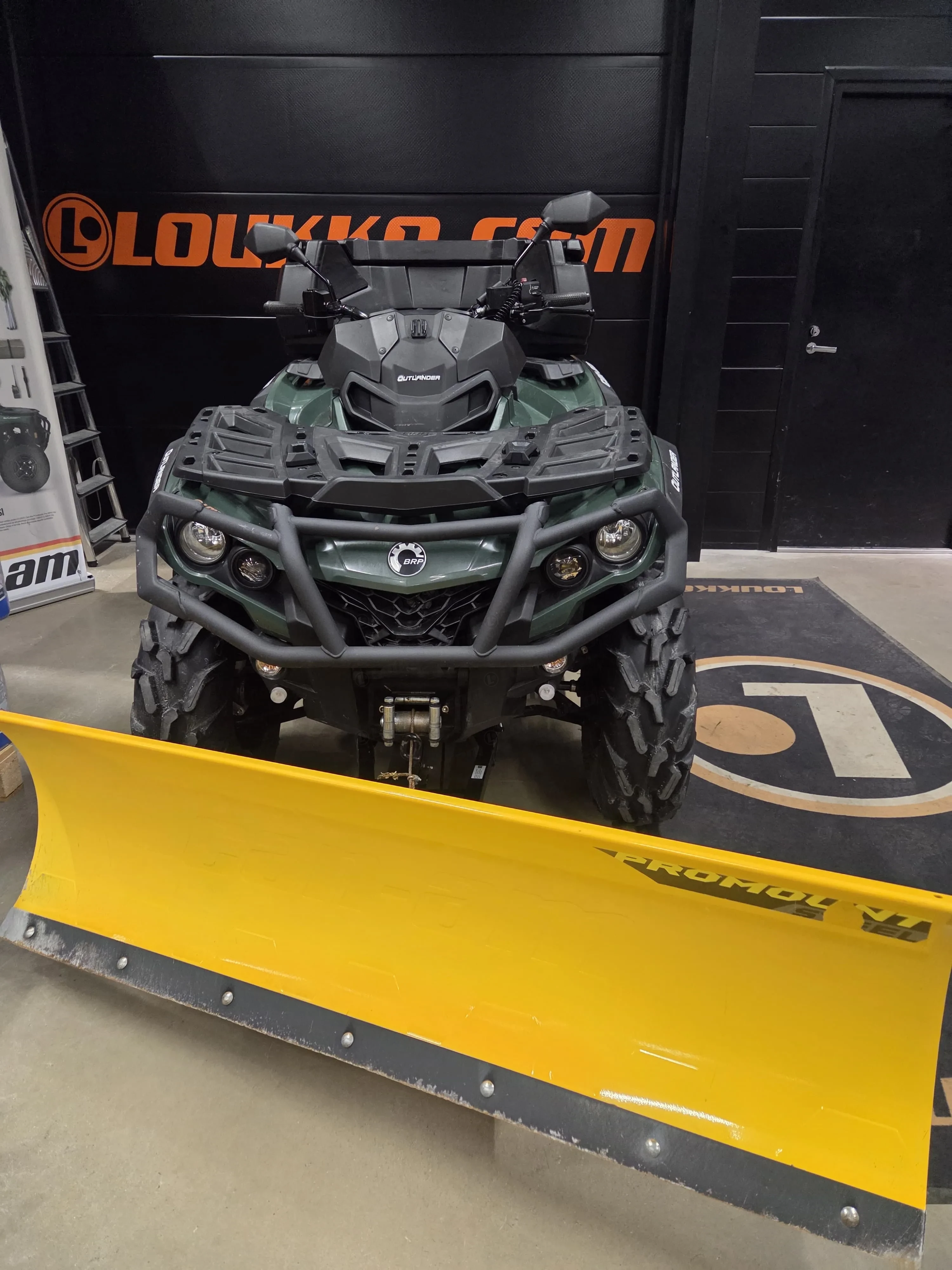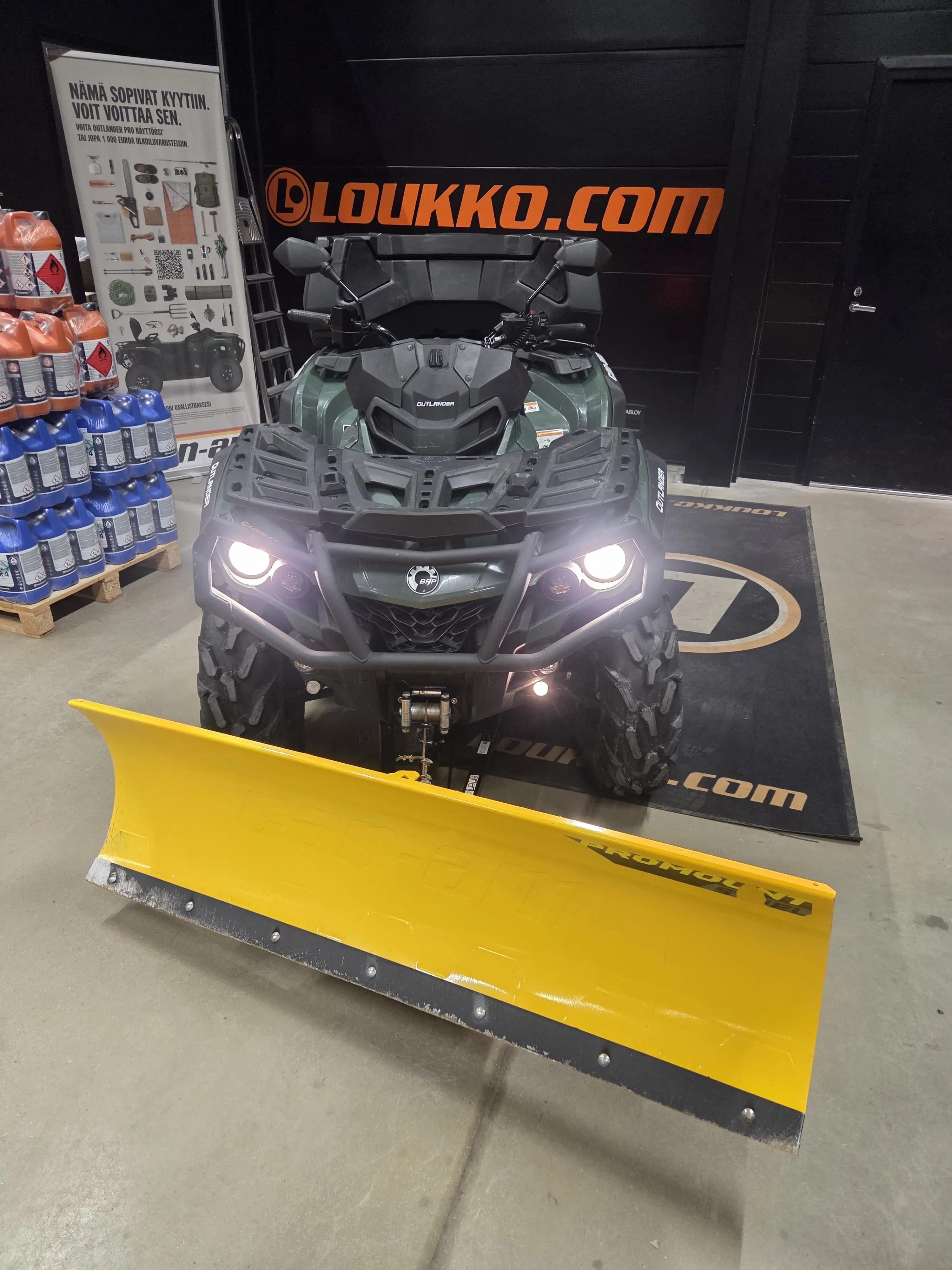 Laite on varustettu BRP 152 cm pikakiinnitteisellä lumilevyllä, mikä tekee talvikäytöstä helppoa ja tehokasta. Kahvanlämmittimet lisäävät ajomukavuutta kylmissä olosuhteissa ja käytännöllinen takaboksi tuo reilusti säilytystilaa. Mukana tulee kaksi avainta, joista toinen on täystehoinen. Lisäksi mönkijä on koodattu 650-tehoille, mikä tuo lisää suorituskykyä.