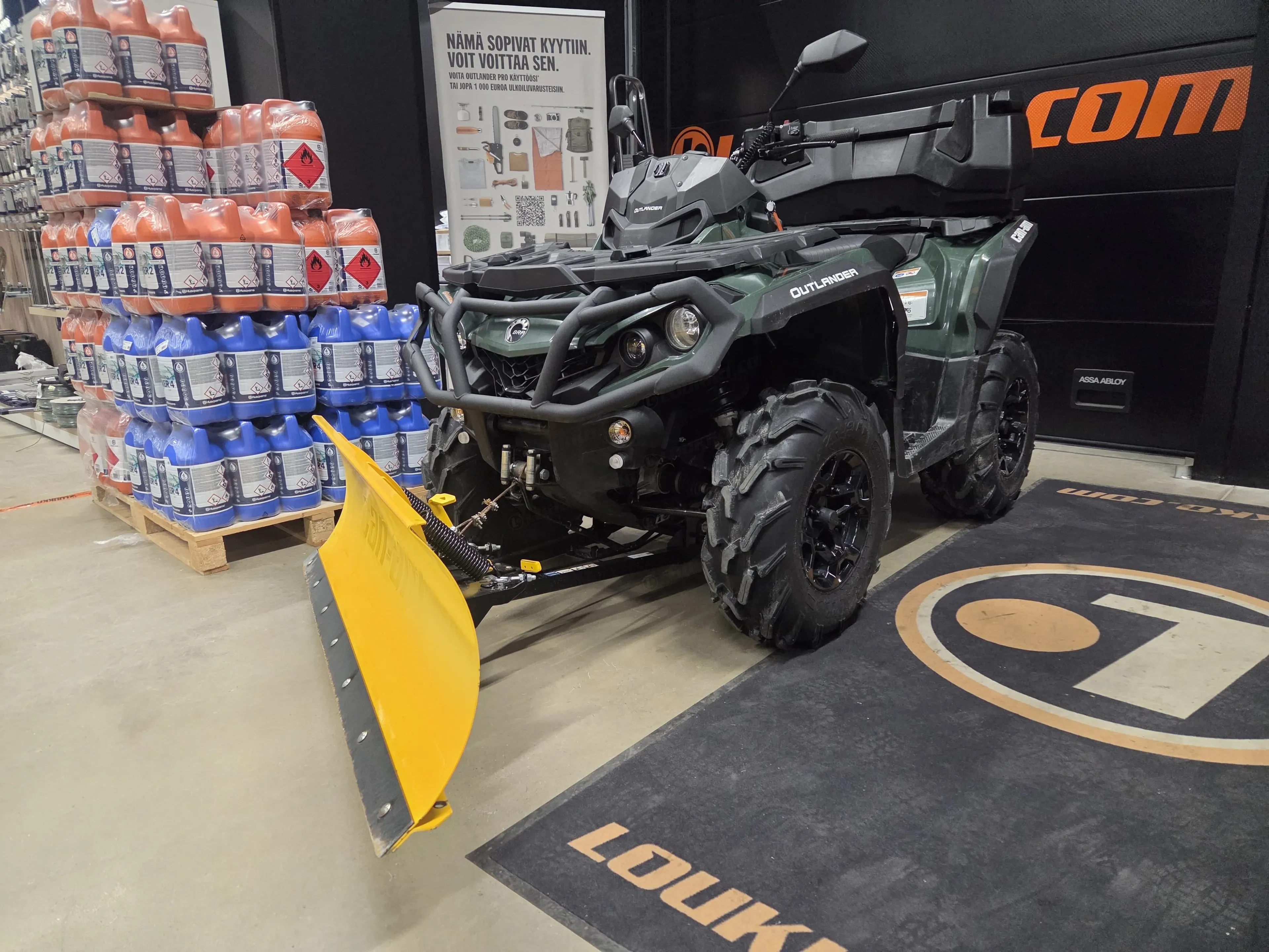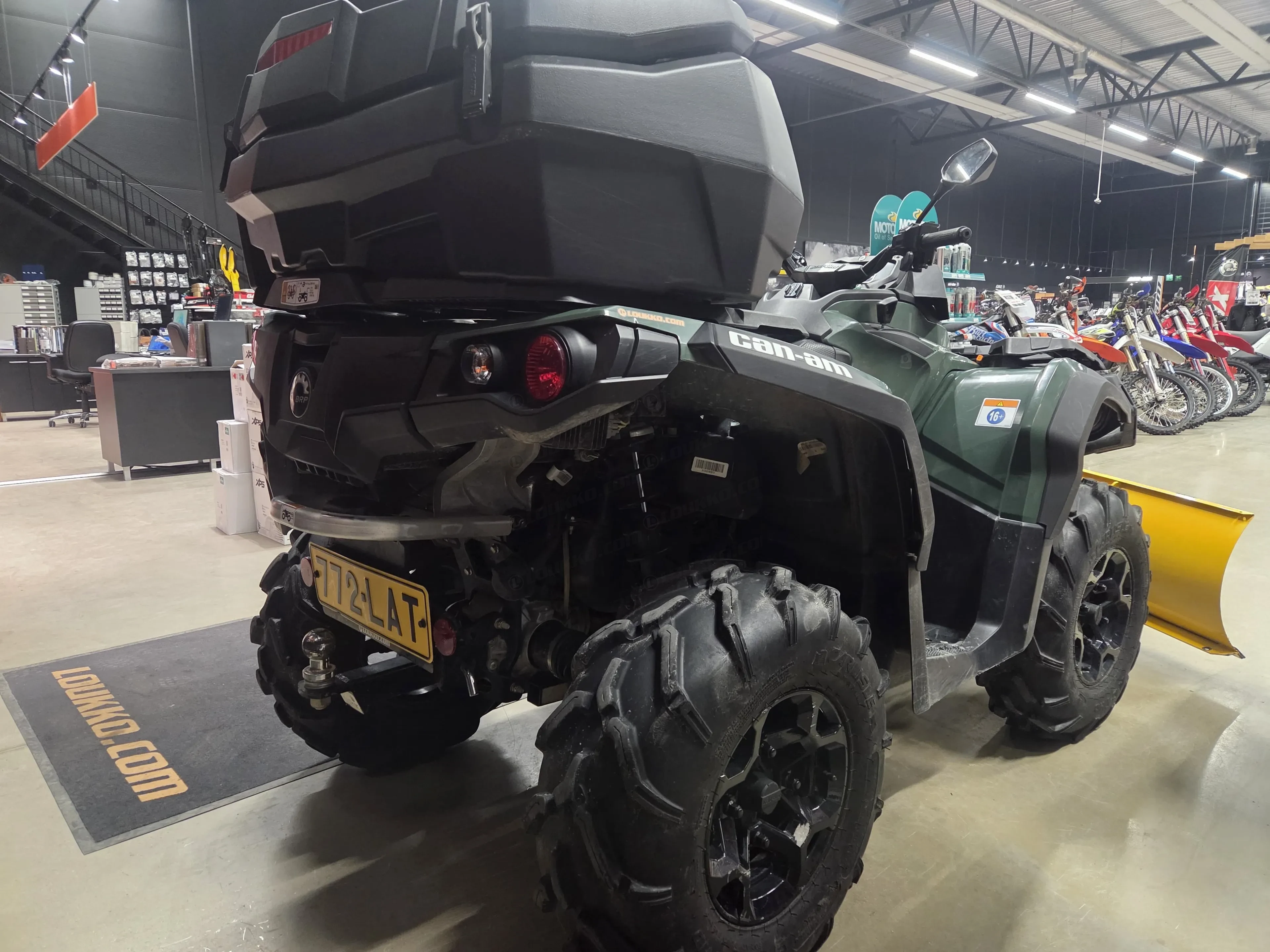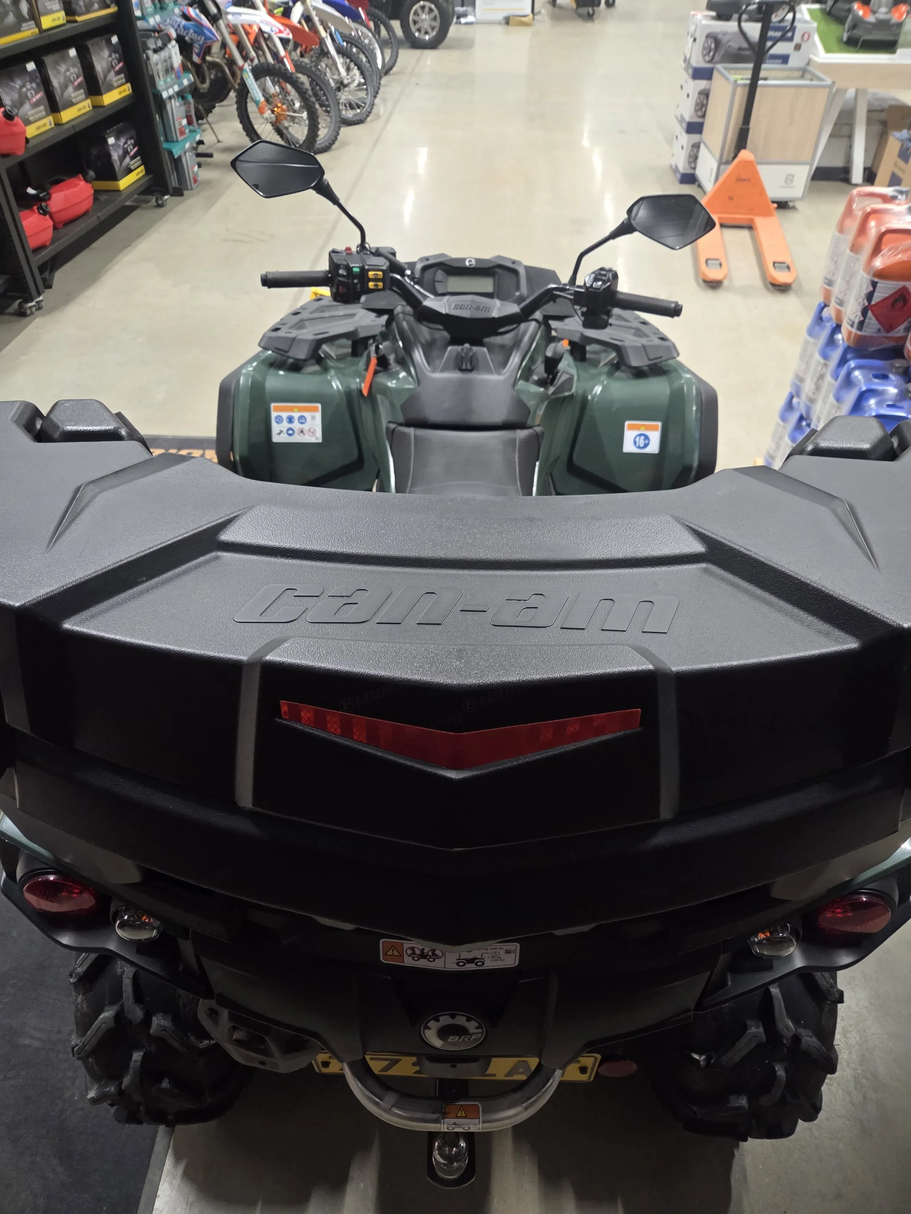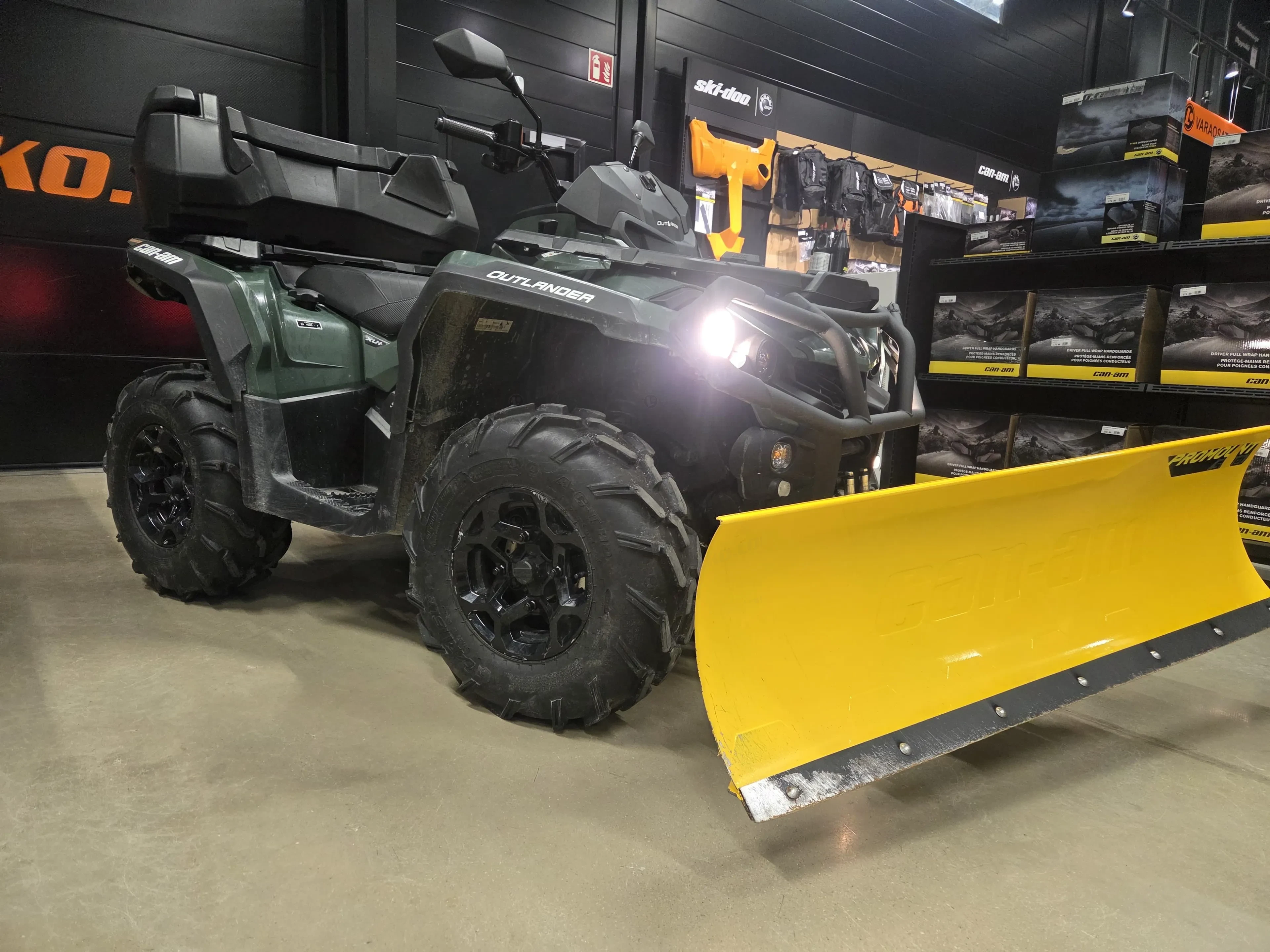 Laite on varustettu BRP 152 cm pikakiinnitteisellä lumilevyllä, mikä tekee talvikäytöstä helppoa ja tehokasta. Kahvanlämmittimet lisäävät ajomukavuutta kylmissä olosuhteissa ja käytännöllinen takaboksi tuo reilusti säilytystilaa. Mukana tulee kaksi avainta, joista toinen on täystehoinen. Lisäksi mönkijä on koodattu 650-tehoille, mikä tuo lisää suorituskykyä.