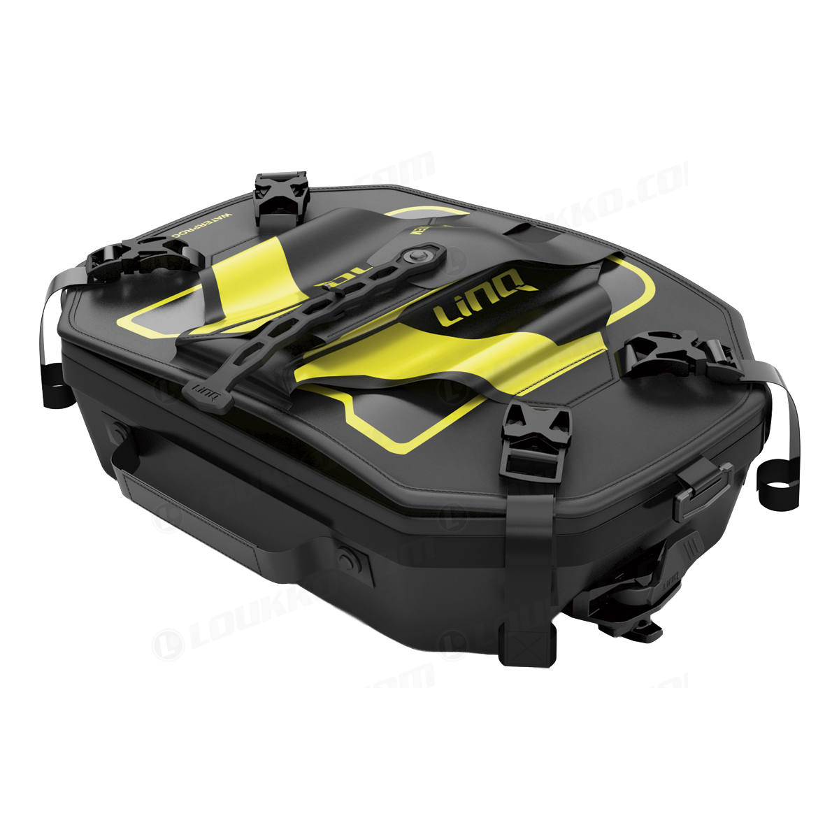 Vesitiivis (TiZipillä). Vedenkestävä. Kevyt. Sopii paikkoihin 1, ja 2 ja polttoainekanisterin päälle. Laajennettava 9 L - 30 L LinQ-syvän lumen laukku. Yhteensopiva suojakansien 860202747, 860202132 & 860202383.