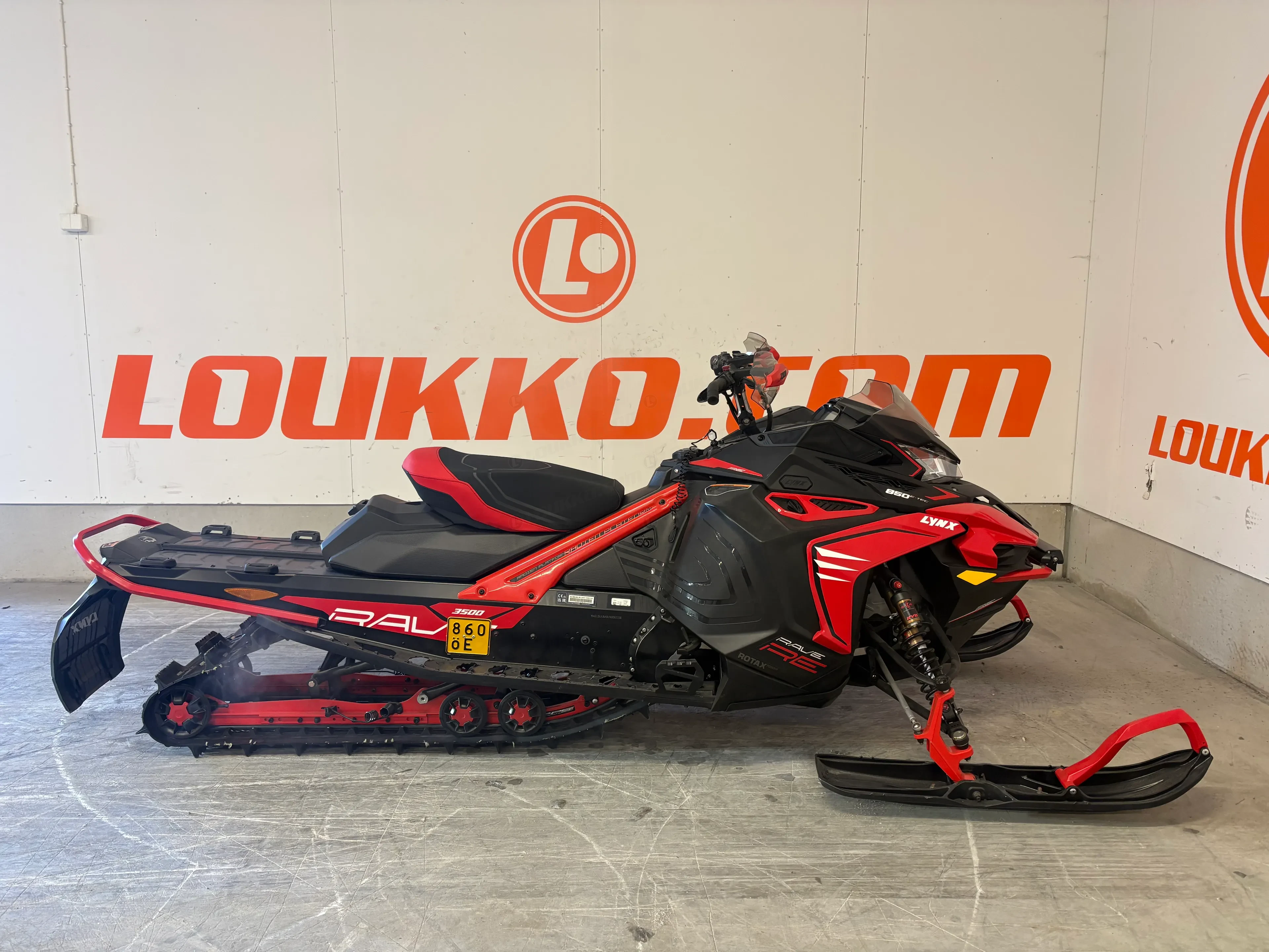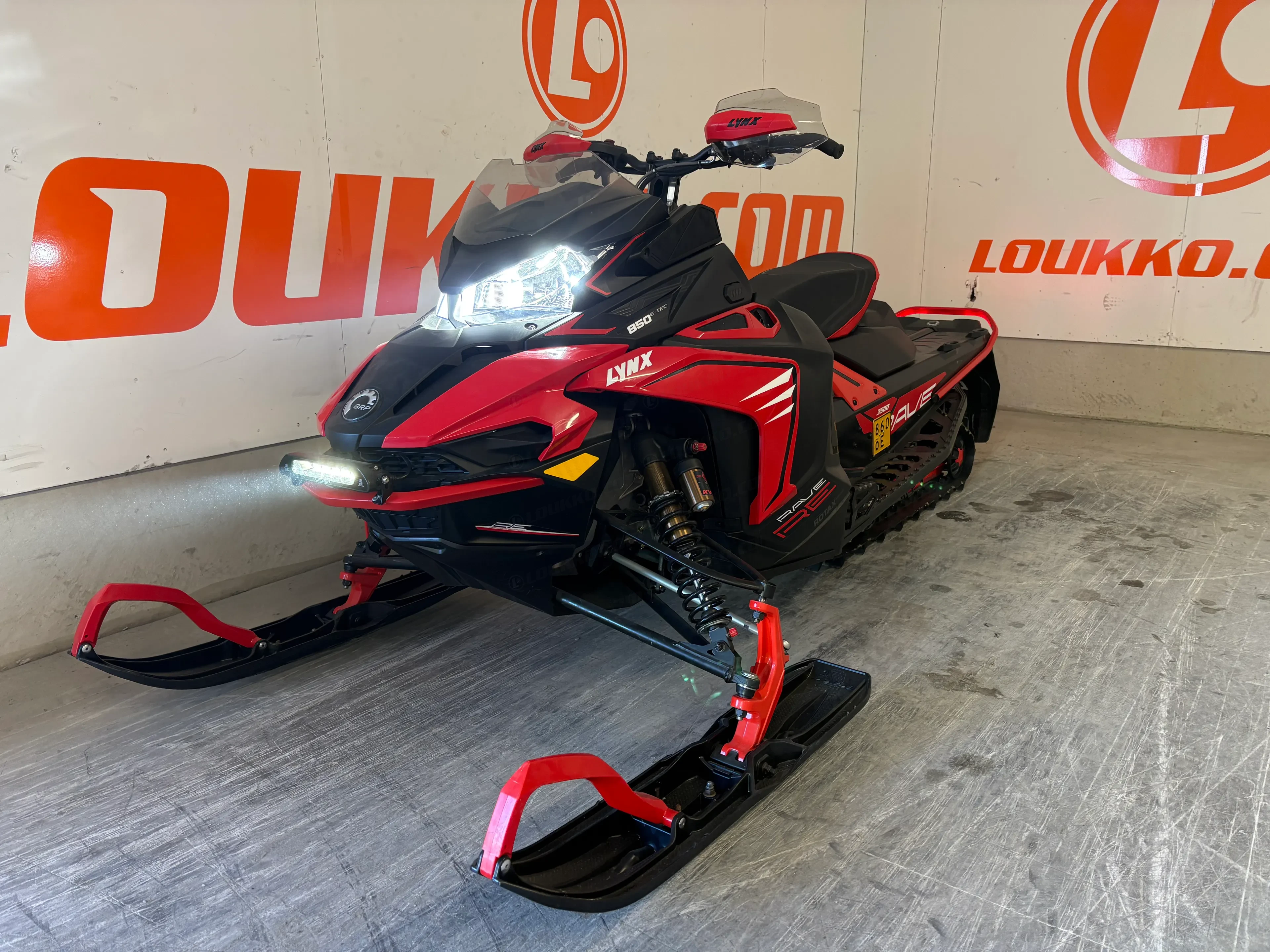 Lynx Rave RE 850 E-TEC on siisti ja ehjä moottorikelkka kovaan ajoon. Ajettu 7345 km, hyvin huollettu ja varusteltu mm. panssarilla, pattisuojilla ja LED-lisävaloilla.