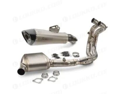 Kokonaan korkealaatuisesta titaanista valmistettu pakoputkisto tarjoaa huippuluokan viimeistelyn, aggressiivisen race-henkisen ulkonäön ja voimakkaan, puhtaan soundin. Järjestelmä täyttää nykyiset FIM-melusäännökset ja on kehitetty nimenomaan kilpakäyttöä varten.