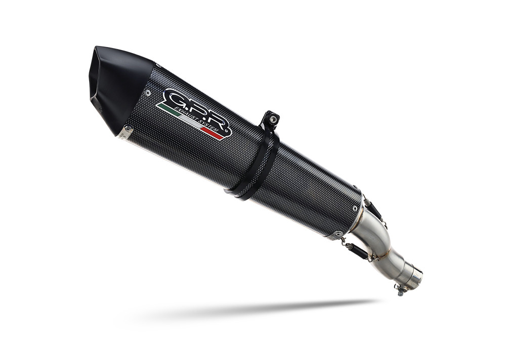 GPR's GP Anniversary Poppy was created to celebrate the 50th GPR anniversary in 2018. It has a stainless steel body with a carbon look finish, avional caps made through CNC machining, and a pentagonal exit. Its round cone shape measures 390 MM x 130 MM.