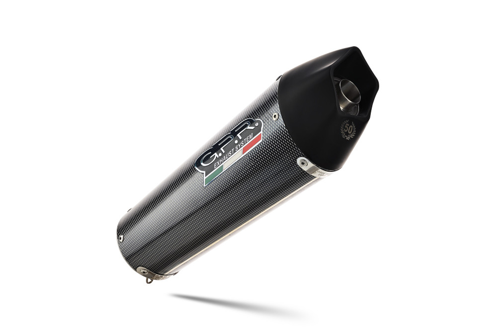 GPR's GP Anniversary Poppy was created to celebrate the 50th GPR anniversary in 2018. It has a stainless steel body with a carbon look finish, avional caps made through CNC machining, and a pentagonal exit. Its round cone shape measures 390 MM x 130 MM.