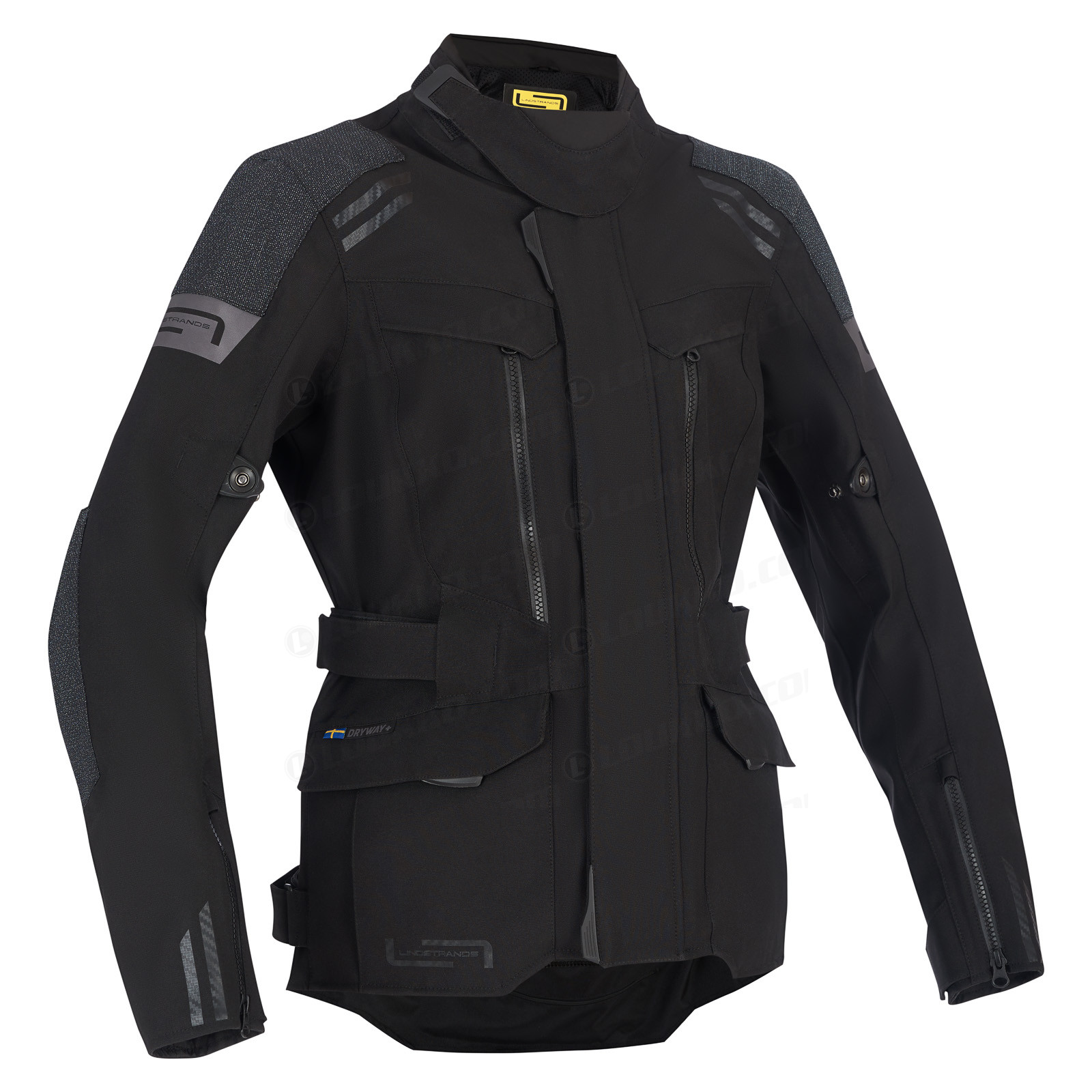 Vettä- ja tuulenpitävä sekä hengittävä laminoitu 2-taso tekstiilitakki stretch-ominaisuuksilla. CE sertifioitu luokkaan AA.