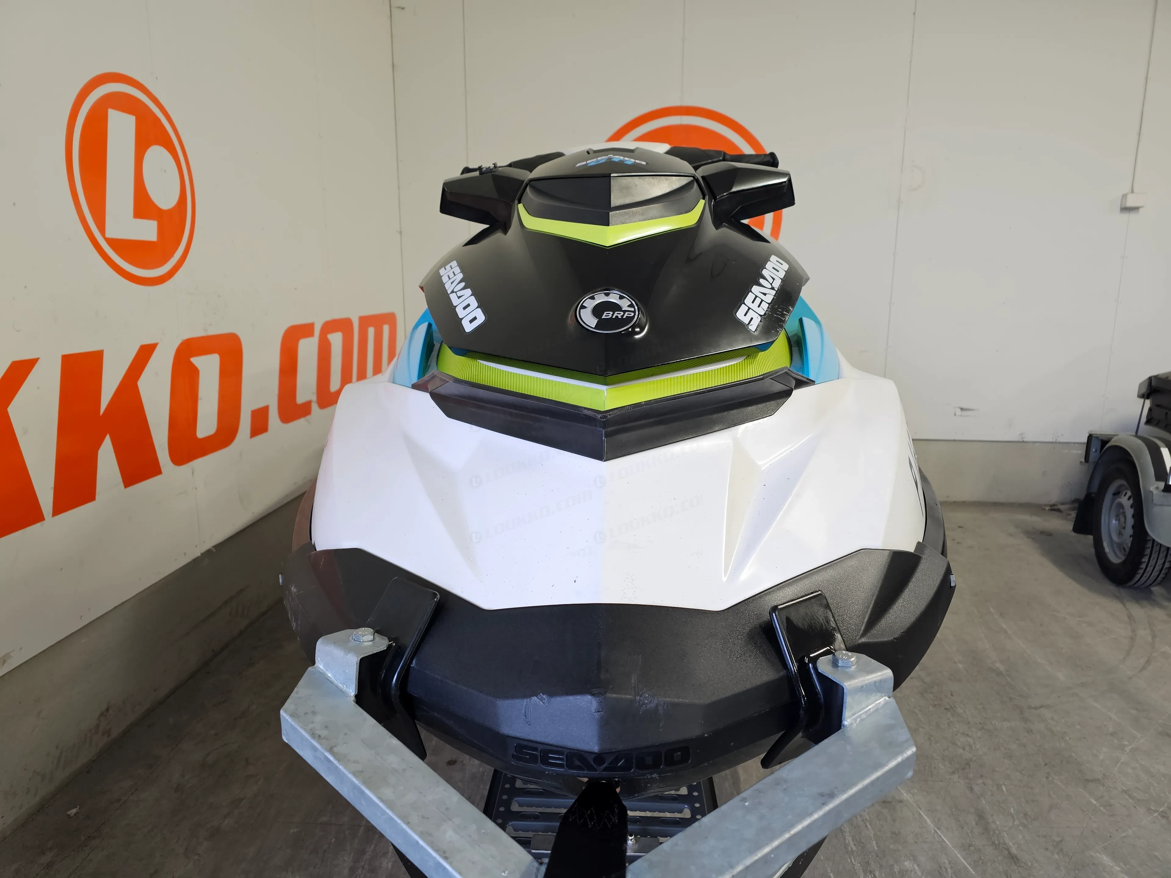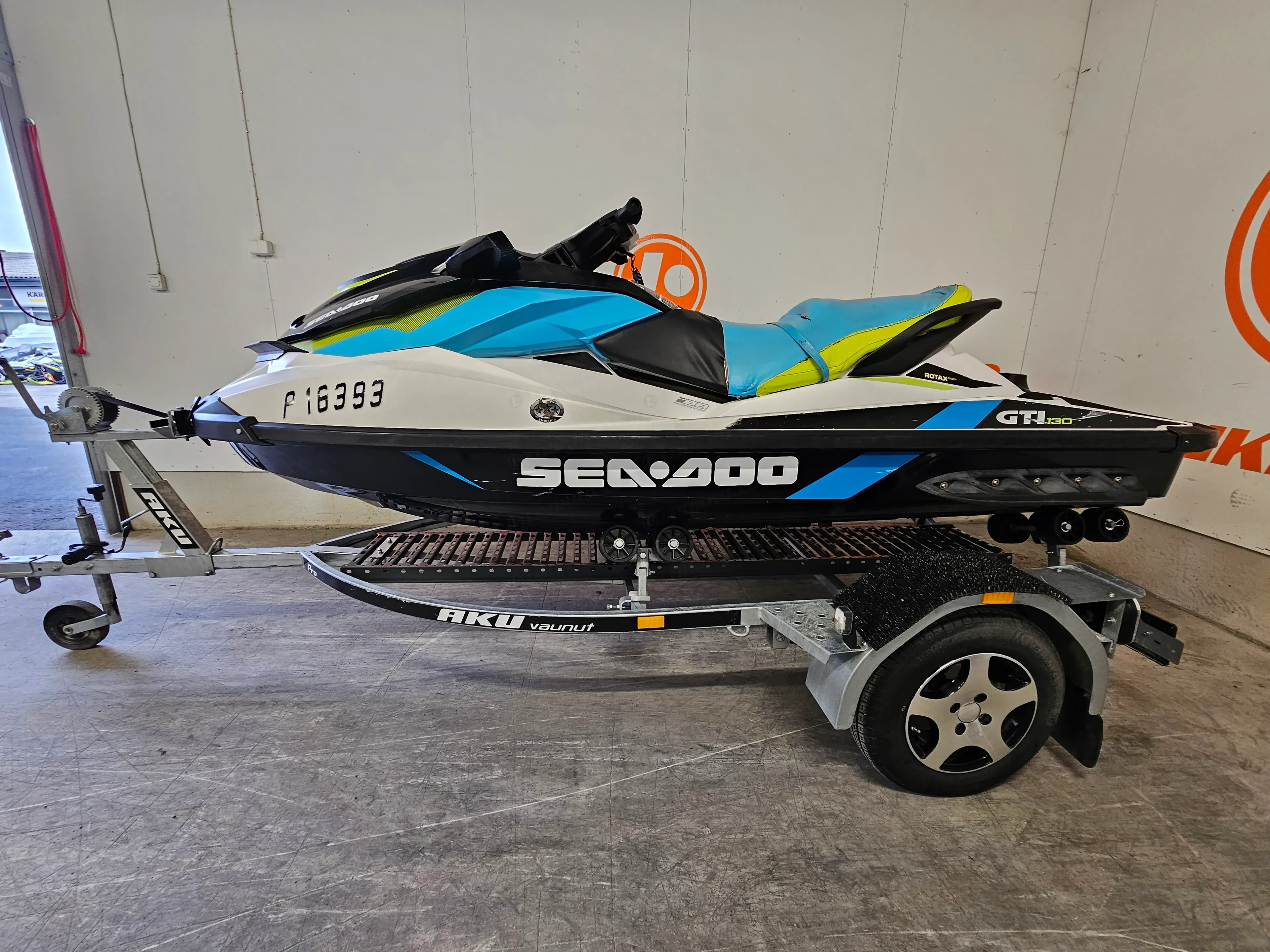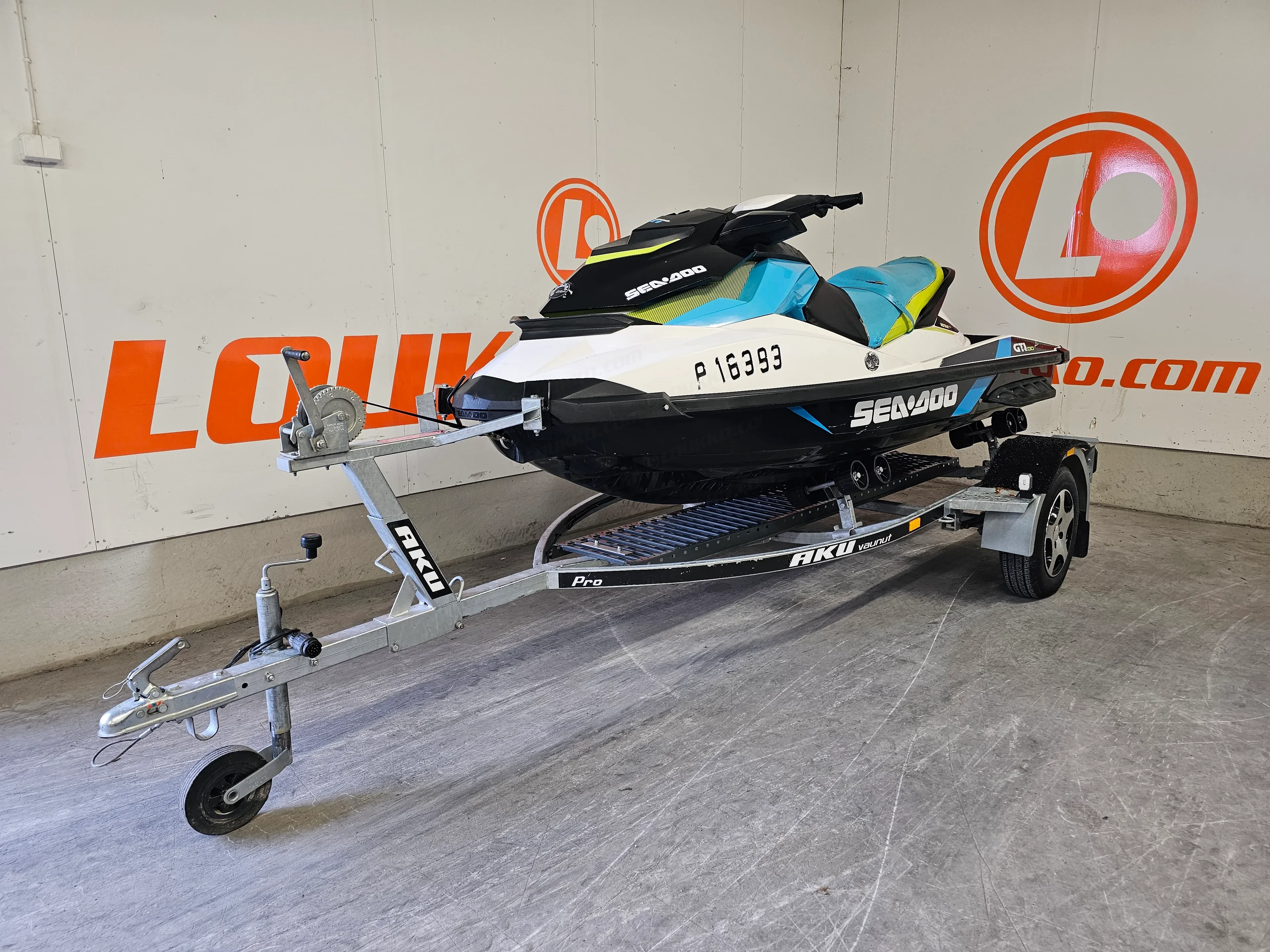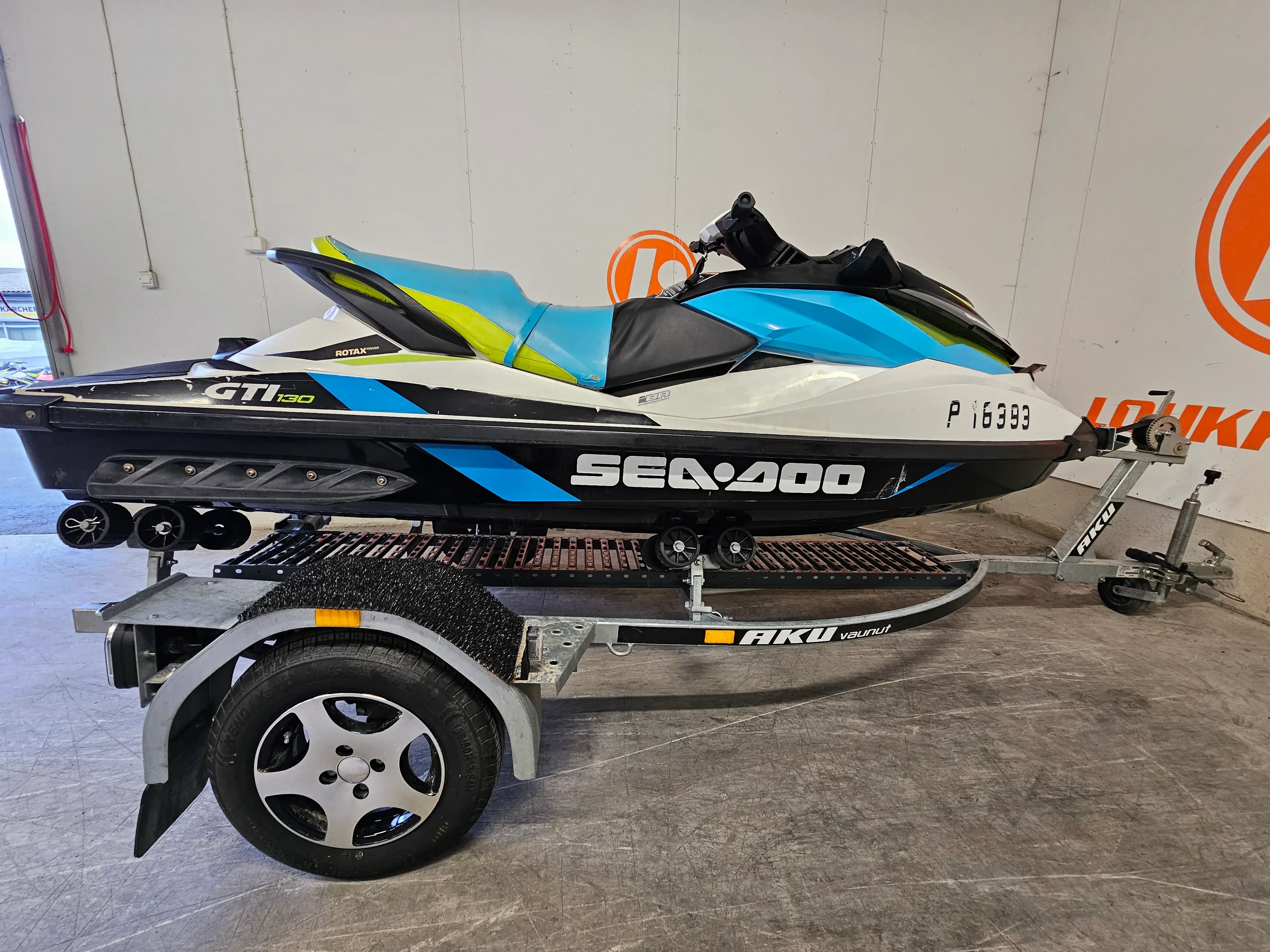 Tämä yksilö on ajettu 184 tuntia ja on ikäisekseen hyvässä kunnossa. Penkinnahassa on vaurio (katso kuvat), mutta se ei vaikuta ajamiseen. Mukaan tulee rekisteröity jetti traileri (DLP-722), joten paketti on oikeasti valmis – tankki täyteen ja vesille.